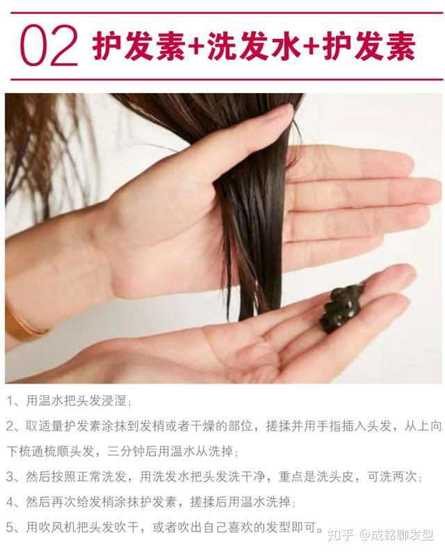 温馨提示:先用护发素这种方法对于细软、受损、干燥容易打结缠绕的发质非常有效。不用担心先用护发素洗不干净头发,因为洗发水是洗头皮的,洗两次头发护发素肯定能洗掉,但不要涂抹到头皮上即可。洗发前用护发素是起到滋润预防打结作用,洗发后用护发素的目的是增加顺滑度和光泽度。
